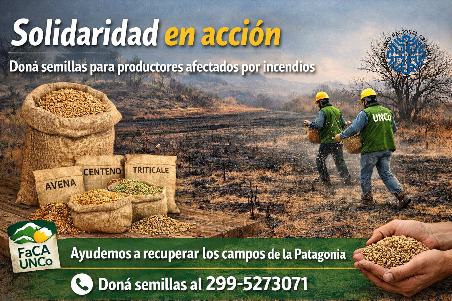 Solidaridad en acción: la FaCA de la UNCo convoca a donar semillas para apoyar a productores afectados por incendios